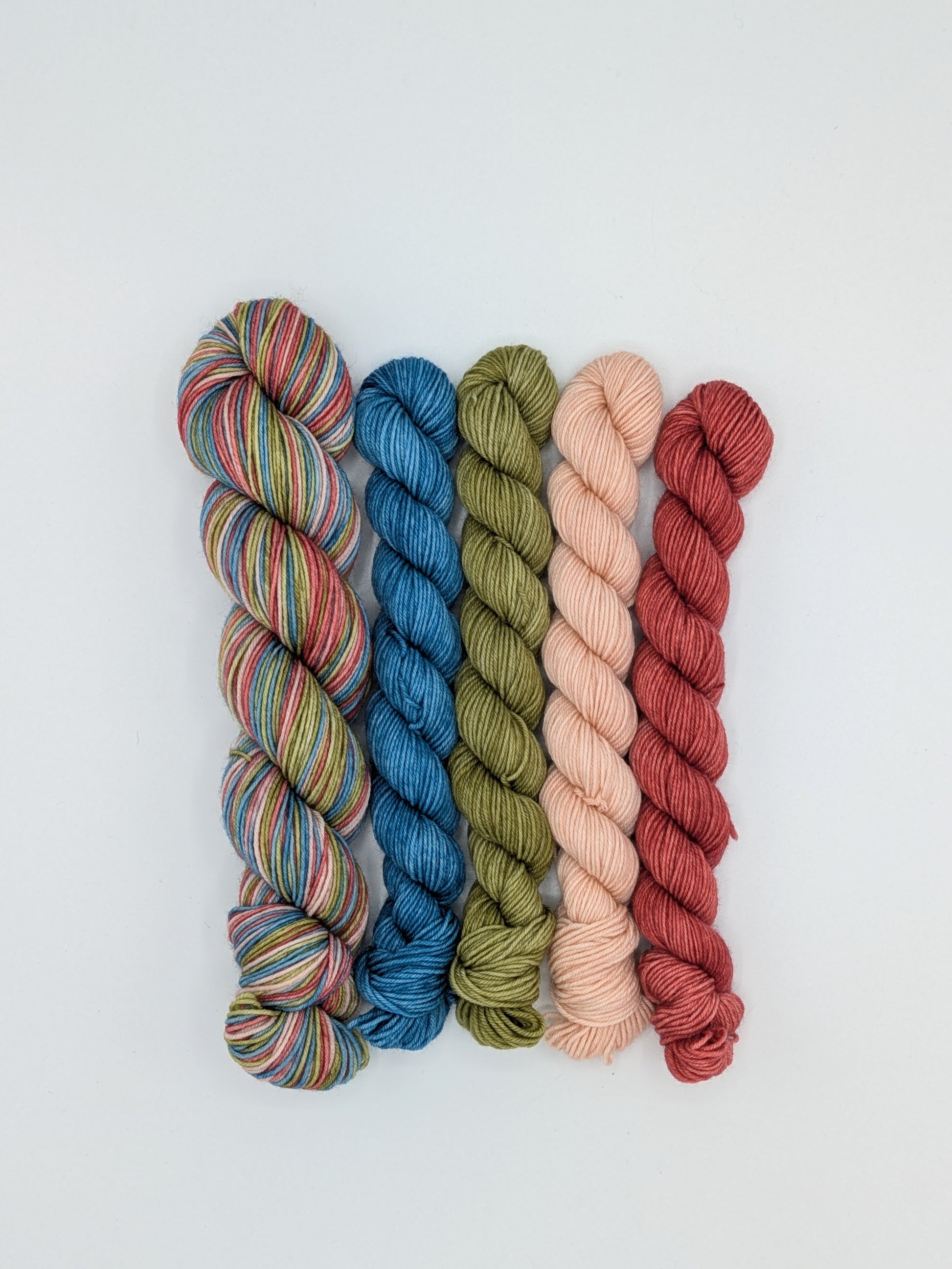 The colors are inspired by the bloom and freshness of early spring, designed to stripe smoothly as you knit or crochet. No need to switch yarns—just cast on and watch the stripes unfold!
