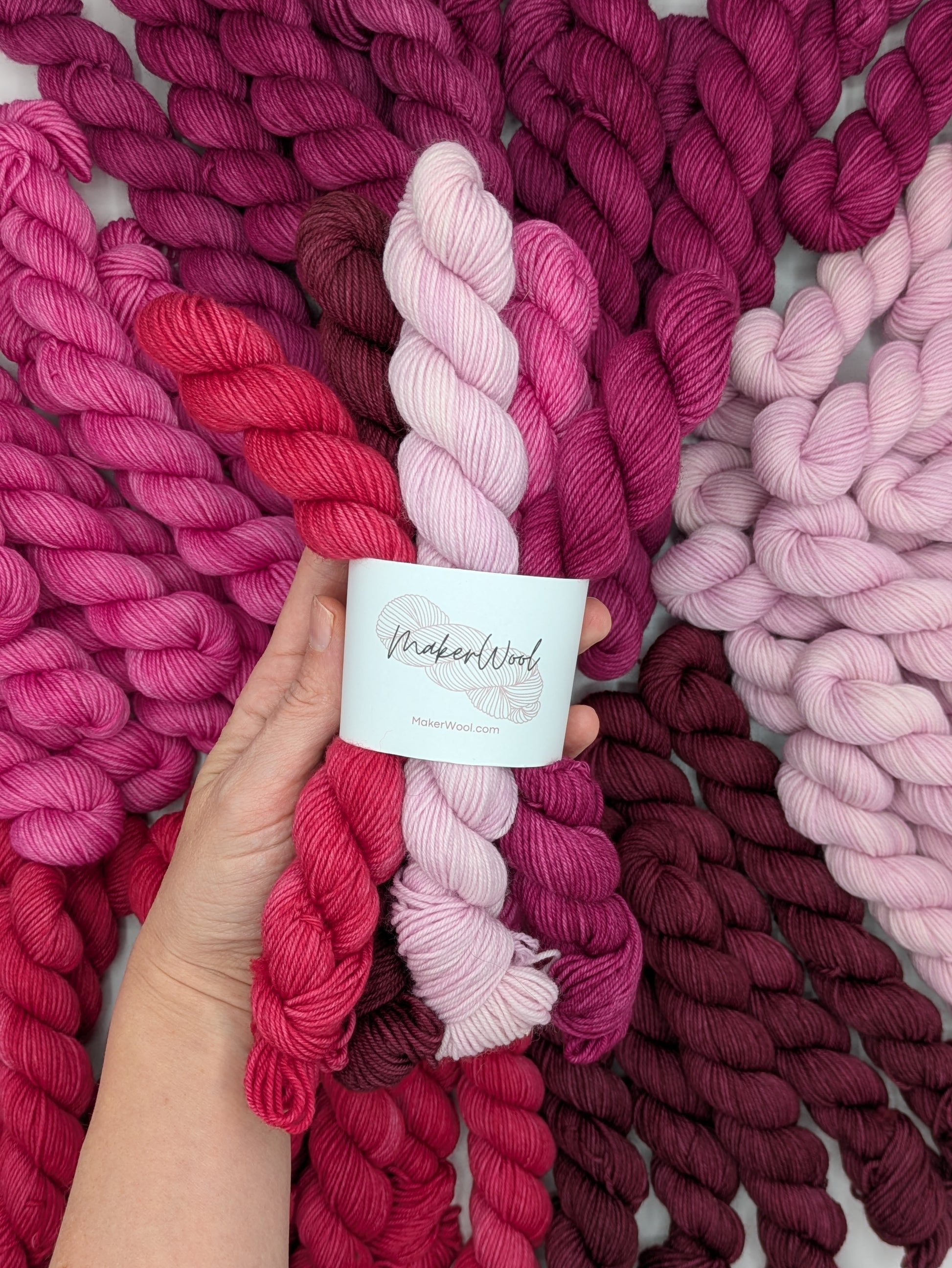 Bring some fun to your next project with our Love Yourself mini skein set! This collection features five beautifully coordinated 20-gram skeins in bright, cheerful Valentine-inspired shades: light and bright pink, red, maroon and burgundy.